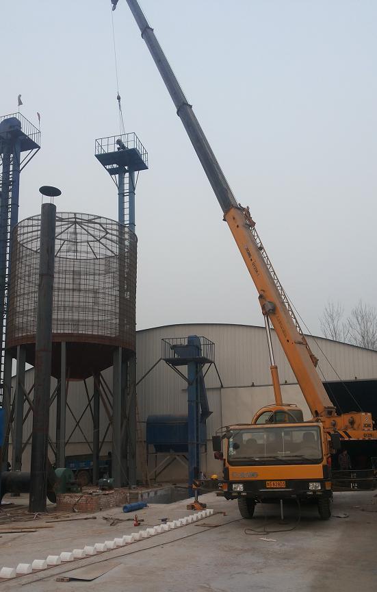 九、斗式提升機應安裝起吊設備,起重量不小于 2t。起重機的軌底與驅動軸中心線的距離一般為 22.2m。